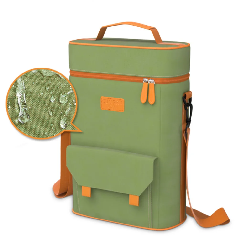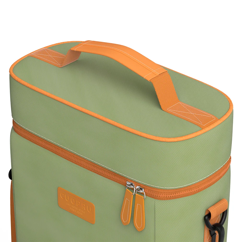【Premium Fabric】Double layer waterproof yerba mate tote carrier or 2 bottle wine travel bag by CUOPRU features with high-quality fabric to ensure maximum durability and sturdy structure. Dimensions: 15 x 9.8x 4.8 inch (L x W x H).